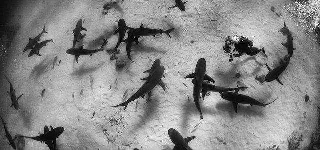 صورة من تجمع للقرش الكاريبي من جزر الباهاما.