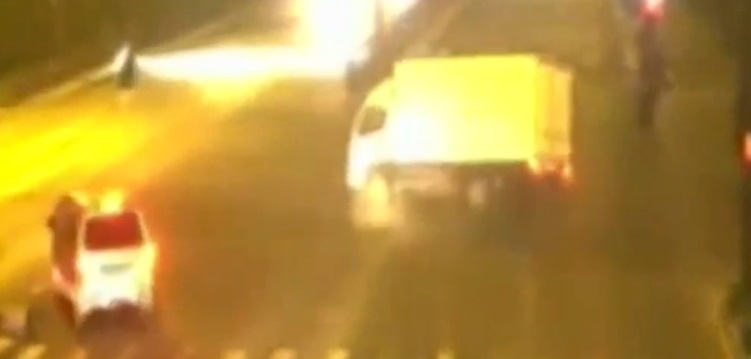 بالفيديو..سائق دراجة نارية "حياً"..بعد حادث مروع مع شاحنة!