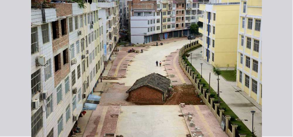 ويقع "البيت المسمار" في منتصف الشارع، وحيداً، ضمن منطقة من الأبنية الشاهقة، شيدتها السلطات، على أراض تابعة لقرية في مقاطعة "نانينغ" الصينية، عاصمة منطقة "قوانغشي" ذاتية الحكم.