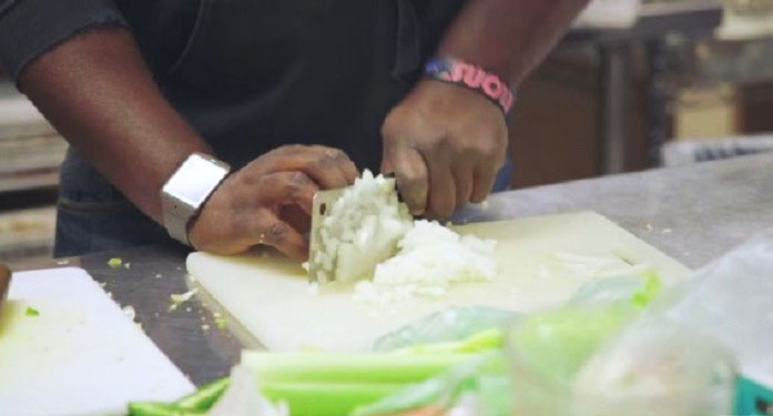 يبدو أن طريقة هذا الشيف جيدة لتجنب ذرف الدموع خلال تقطيع البصل فقد اكتشفها بعد العمل لفترات طويلة في أكبر الطاعم حول العالم، والفكرة غاية في البساطة فما عليك الا أن تبدأ بقطع الجزء العلوي من البصل والمحافظة قدر الإمكان على الجزء السفلي..لماذا؟