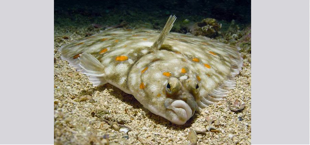 للوهلة الأولى تظن أنك أمام مشهد لأعماق البحر، الى أن تفاجئك بحركة ما، فتكتشف أنها سمكة "الترس" التي تظهر للحظات، ثم تعود للاختفاء من جديد..