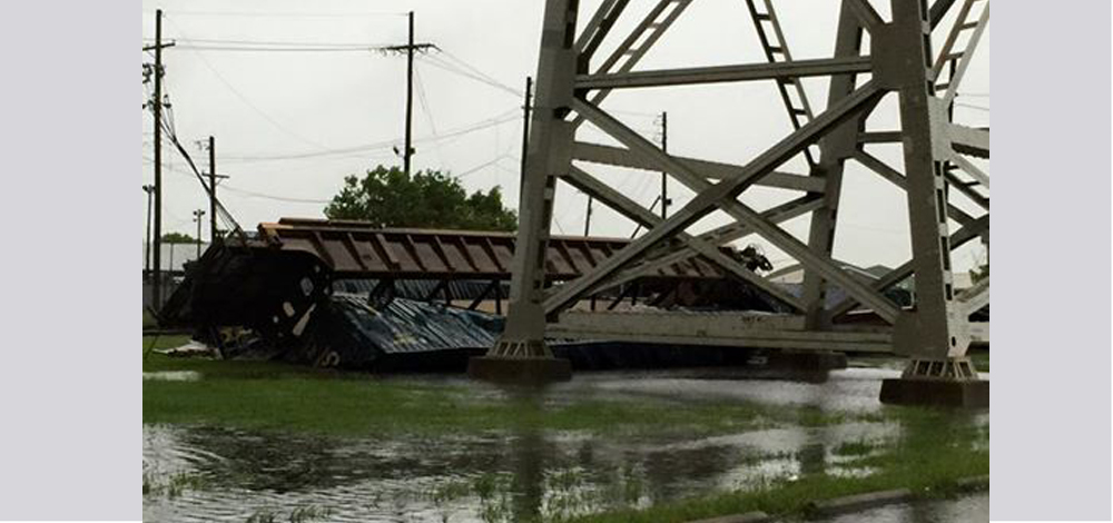 هاجمت عاصفة قوية عربات قطار للنقل، ودفعت به من أعلى الجسر الى أسفل الطريق، في مشهد التقطته عدسة أحد المارة صدفة.