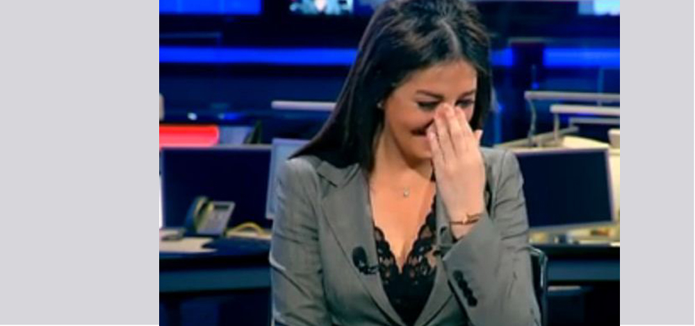 بالفيديو..شاهد مذيعة لبنانية تصاب بنوبة ضحك على الهواء