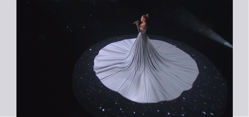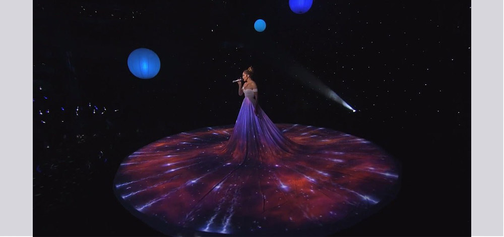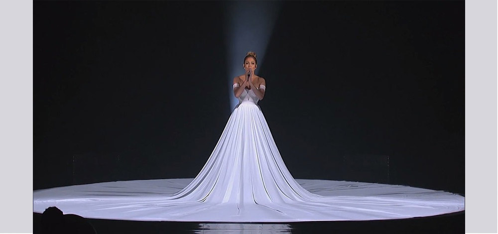 استطاعت جينيفر لوبيز بإطلالتها المميزة أن تضيف الى حضورها الأخاذ سحرا من خلال فستانها المميز وقد يكون الفريد بتصميمه ، فقد اعتلت مسرح برنامج American Idol الذي هي عضو في لجنة تحكيمه وشدت بأغنية Feel the Light وهي أغنية فيلم Home. ,ارتدت جينيفر لوبيز الفستان المبهر ذا اللون الأبيض، والذي استغله المخرج ليكون فستاناً تفاعلياً يعرض من خلاله أجزاء من الفيلم بشكل مبهر مع إضاءة براقة، جعلت الجمهور في حالة اندماج تام مع الأغنية.