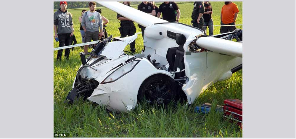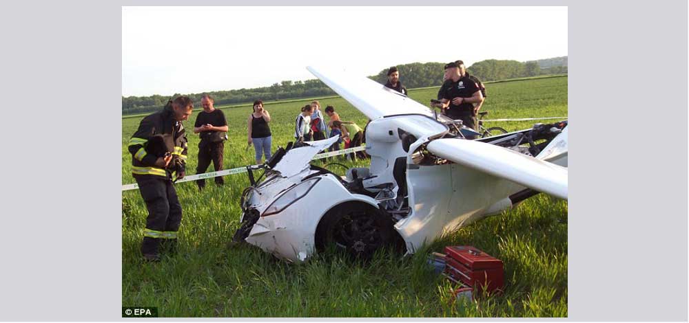 نجا مصم أول "سيارة طائرة" في العالم، "ستيفان كلاين"، من حادث خطير، الجمعة الماضية، بعد سقوط "الاختراع الجديد" في سلوفاكيا، حيث كانت في رحلة تجريبية.