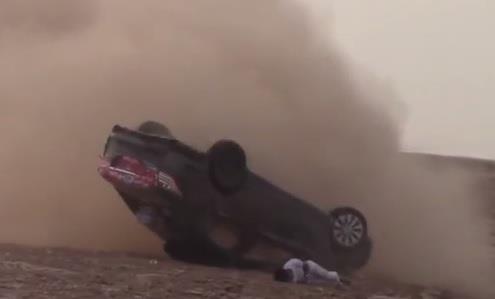 بالفيديو.. انقلاب سيارة مفحط في الصحراء