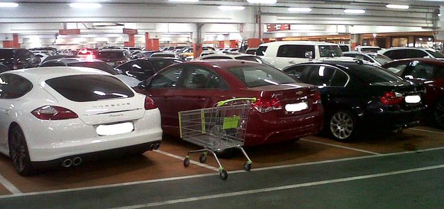 ارتفاع عدد السيارات المصابة بخدوش رغم تقنيات مساعدة السائق في وضع السيارة في أماكن الانتظار. تصوير: أحمد عرديتي