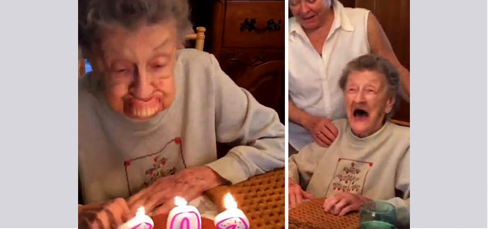 بالفيديو..شاهد ماذا حدث لسيدة تحتفل بميلادها الـ 102