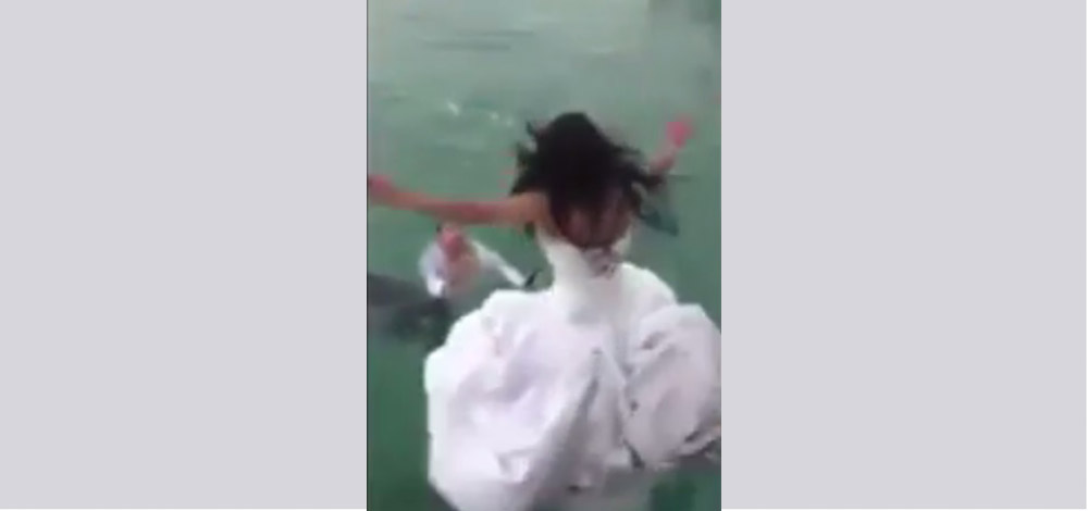 وسط صيحات التشجيع قفزت عروس ليلة زفافها الى بركة السباحة لتلتحق بعريسها الذي ينتظرها في الماء في اجواء مثيرة ومميزة، لكن لم يكن في حسبانها أن فستانها سيغمرها قبل الماء، ويكتم أنفاسها ملتفا حول عنقها كحبل المشنقة، تاركا اياها تتخبط بحثا عن مخرج من مأزقها.