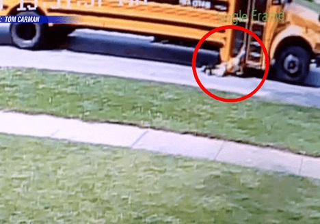 بالفيديو.. حافلة مدرسية تجر طفلة لمسافة ملعب كرة!
