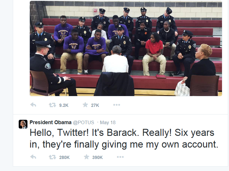 ونشر أوباما أول تغريدة على حسابه الجديد، الذي بلغ عدد متابعيه 2.26 مليون متابع، يوم الإثنين الماضي، قائلا "أهلاً تويتر أنا باراك، بعد ست سنوات أخيرا منحوني حسابي الخاص".