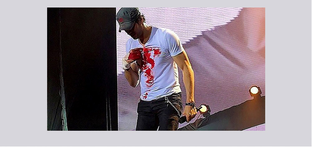 أصيب المغني الإسباني إنريكي اغليسياس بجروح في أصابع يده اليمنى، بينما كان يحاول إمساك طائرة صغيرة مزودة بكاميرا، حاول الإمساك بها خلال حفلة غنائية بمدينة تيخوانا المكسيكية. وما إن مد يده إليها حتى اصطدمت يده بريشة مروحيتها، وبدأ ينزف.