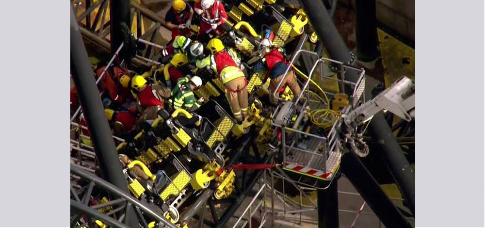 وأدى العطل الى اصطدام مقطورة تقل مجموعة مؤلفة من 16 شخصا مع مقطورة اخرى فارغة، فبقوا عالقين في الهواء على ارتفاع 25 قدماً بزاوية 45 درجة، ما استدعى الاستعانة بالمروحيات. واقيمت منصة تسهل عمل المسعفين للوصول الى الجرحى ومساعدتهم.