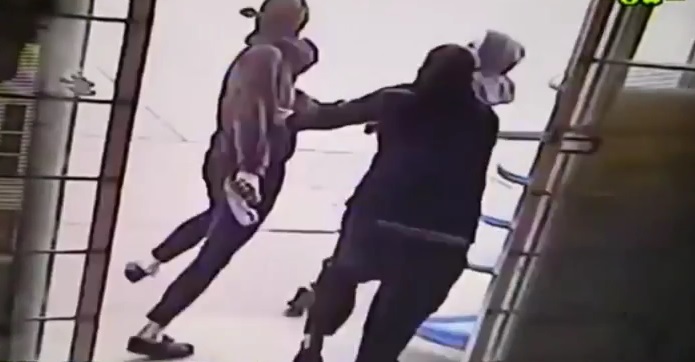 ووفقاً لموقع liveleak، فقد لاذت العصابة المكونة من ثلاثة اشخاص من الفرار من المتجر، على وقع ضربات عصا صاحب المتجر.