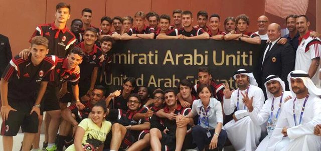 زار فريق كرة القدم «إيه سي ميلان» تحت 16 سنة، أمس، جناح دولة الإمارات في «إكسبو ميلانو 2015»، وطلب الفريق زيارة الجناح للتعرف إلى دولة الإمارات، باعتبارها الراعي الرسمي له، حيث كان جناح الدولة أول محطة للفريق في إكسبو.
