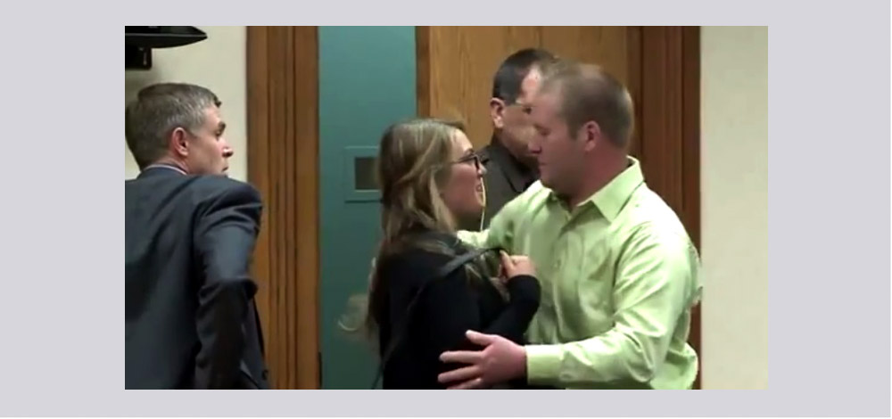 ودع أميركي المرأة التي قتلت زوجته عن غير عمد وعانقها،كما طبع قبلة على خدها قبل لحظات من مغادرتها قاعة المحكمة والتوجه الى سجنها، في مشهد رسم الكثير من علامات الاستفهام.. كيف تفسر ردة الفعل هذه؟ شاهد التقرير التالي وشاركنا الرأي.