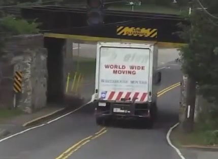 اصطدمت شاحنة صغيرة، بجسر منخفض الارتفاع مخصص لمرور القطارات في ولاية "ماساشوستس" الأميركية.
