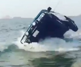 متهور يقود 4*4 على "اطارين" في البحر!
