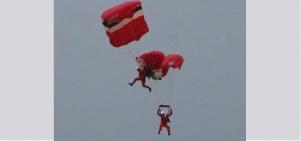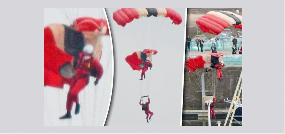 كاد عرض لمجموعة من المظليين بالجيش البريطاني أمام جمهور غفير ينتهي بكارثة عندما تعطل جهاز فتح المظلة لأحد أعضاء فريق "ريد ديفل" لولا تدخل بطولي من زميل له في الجو.