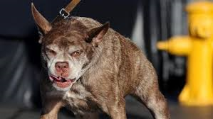 توجت كلبة مقدامة مختلطة محدبة الظهر من سلالة البيتبول بجائزة أقبح كلب في العالم متغلبة على 26 اخرين من منافسيها في مهرجان ينظم سنوياً في كاليفورنيا.