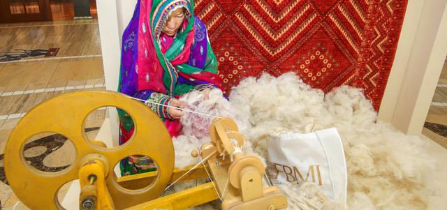 في الردهة التي تقع عند المدخل الرئيس لدبي مول، تجلس مجموعة من السيدات اللواتي يرتدين لباسهن التقليدي الأفغاني، يحكن السجاد بشغف يظهر مدى عشقهن لهذه الحرفة التي تعد الأبرز في بلدهن. يحولن الصوف الى خيوط ومن ثم الى سجادة محاكة يدوياً، ليقدمن هذه الحرفة كفن من الصوف الملون. ويعرض في الردهة مجموعة من السجاد التي حيكت يدوياً، وذلك ضمن مشروع فاطمة بنت محمد بن زايد، الذي يهدف الى ايجاد فرص عمل وتمكين النساء الأفغانيات من خلال الحرفة التي يتقنها، فينعكس على المستوى المعيشي لحياتهن.
