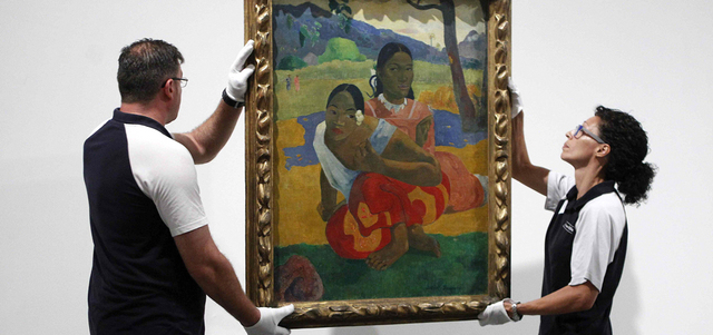 عرضت اللوحة «نافيا فايبويبو» أو «متى ستتزوجين»، التي تردد أنها أغلى لوحة بيعت حتى الآن، والتي رسمها الفنان الفرنسي بول جوجوان المنتمي إلى فن ما بعد الانطباعية في متحف رينا صوفيا في مدريد أول من أمس.