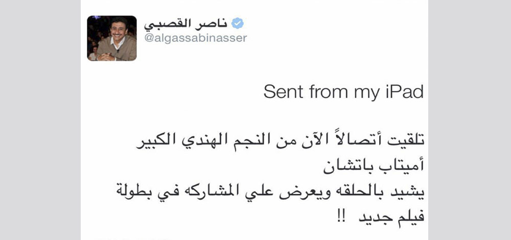 بعد ساعات من عرض الحلقة 17 من مسلسل "سيلفي"، التي كانت بعنوان "الجواري والحرة"، نشر الفنان السعودي ناصر القصبي عبر صفحته على موقع التواصل الاجتماعي "تويتر" رسالة قصيرة قال فيها: "تلقيت اتصالاً الآن من النجم الهندي الكبير أميتاب باتـشان، يشيد بالحلقة، ويعرض علي المشـاركة في بطولة فيلم جديد"، ذلك حسب مانشرته مواقع اخبارية