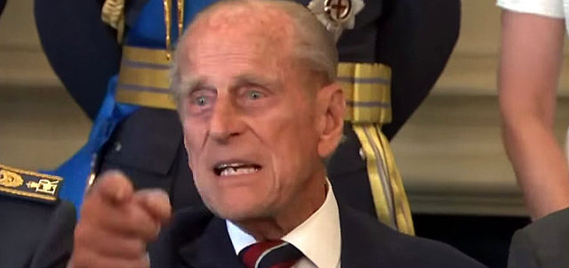 ففي حفل لإحياء الذكرى الـ75 لمعركة بريطانيا بين سلاح الجو الملكي وسلاح الجو الألماني عام 1940، أظهرت لقطات تلفزيونية الأمير فيليب وهو يفقد أعصابه في ما يبدو أثناء التقاط صور.