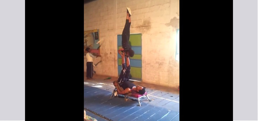 تداول رواد مواقع التواصل فيديو لطفل قدم مهارات مذهلة وخطيرة، وهو يتقلب في الهواء بدفعات من يدي وقدمي مدربه.