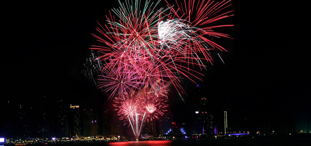 زينت عروض الألعاب النارية سماء دبي خلال أيام العيد، وشكلت خيوطها وألوانها المتناثرة لوحات غاية في البراعة والجمال، ورسمت البسمة على شفاه الجمهور صغاراً وكباراً، حيث اصطفوا على الشاطئ وجوانب الطرقات لحضور هذا الاحتفال البهيج.وانطلقت الألعاب منذ اليوم الأول لاحتفالات «العيد في دبي ــ عيد الفطر».