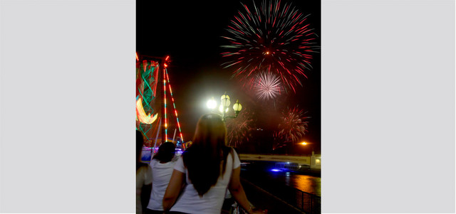 سماء قناة القصباء في الشارقة تمطر بهجة ملوّنة ولوحات «نارية»، تجتذب العيون، وكذلك العدسات، لتسجل تلك اللحظات الجميلة خلال عطلة عيد الفطر السعيد.