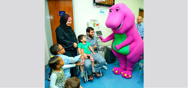 «الديناصور البنفسجي» يمتع أطفال «خليفة الطبية»