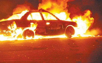 بالفيديو.. احتراق سيارة وسائقها بعد سكبه بنزين على عامل!