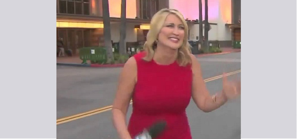 أصيبت مراسلة الأخبار الأمريكية "ويندى بورش" بحالة من الهلع، بعد أن تسلل شاب من خلفها خلسة، ليظهر معها في الكادر، مستغلاً اندماجها التام في تأدية دورها على الهواء مباشرة.