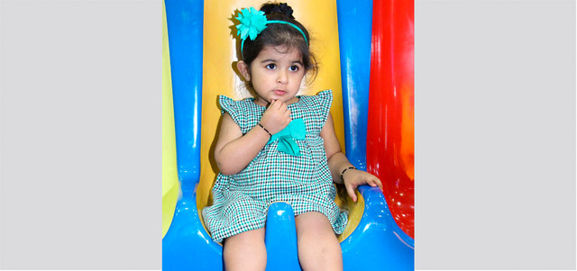 نظرات الأطفال الزائرين لـ«عالم مدهش» تنشر البراءة في أرجاء المكان، وتزيد من روح المرح لدى الأهل، وهم ينظرون إلى أطفالهم وهم يعبرون عن دهشتهم بالمكان بوساطة حدقات أعينهم.. وهنا صورة للطفلة ريانا الذكواني، (سنتان)، وهي تحدّق بلعبة على مد بصرها بدهشة بائنة في عينيها، بعد أن صعدت على لعبة ترتفع عن الأرض ستة أمتار، بحيث تتمكن من كشف «القاعة رقم 4» بكاملها.