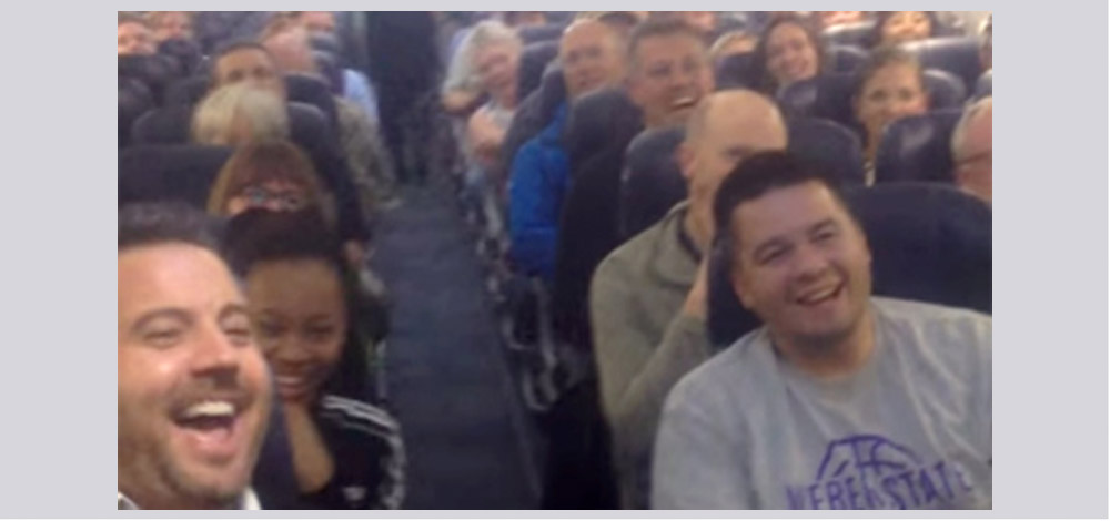 بالفيديو.. مضيف يحول الطائرة الى مسرح كوميدي