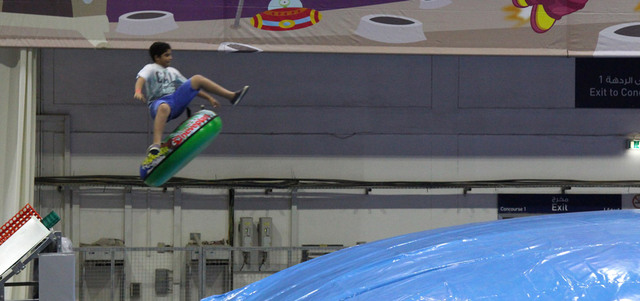 ويمتد المنحدر الثالث على مسافة 20 متراً، وينتهي بوسادة هوائية عملاقة تزيد حجم المغامرة والمرح عندما يقفز المشارك في اللعبة من الإطار البلاستيكي الذي يحمله على هذه الوسادة المرنة، ويرتد إلى الهواء ثم يسقط مجدداً على الوسادة الهوائية.