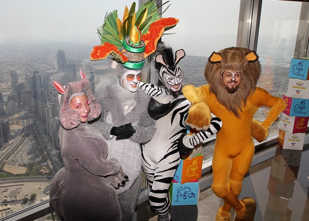 كما بدت الفرحة أيضا على وجوه الأطفال والكبار بعد رؤيتهم أبطال "مدغشقر"، "أليكس" الأسد، و"مارتي" حمار الوحش، و"ميلان" الزرافة، و"غلوريا" فرس النهر، والذين قاموا بزيارة لاحقة إلى قمة برج خليفة وسط ذهول الحاضرين وإعجابهم.