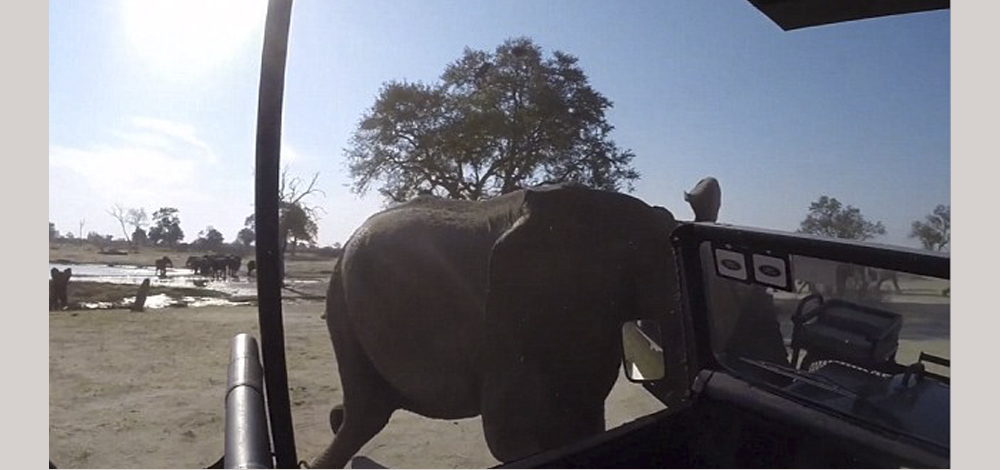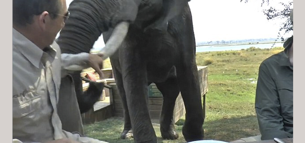 عبر فيل غاضب عن امتعاضه من سائحَين في حديقة زمبابوي بهجوم عنيف شنه عليهما أثناء تناولهما الطعام ، لعدم اكتراثهما لوجوده أو تقديمهما أي شيء لإطعامه .