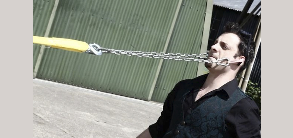 حيث قام الشاب سحب الطائرة من طراز "سيسنا 172 بي" التي تزن 677 كيلوغراماً بواسطة سلاسل حديدية مربوطة بثقبين في أذنيه لمسافة 20.4 أمتار.