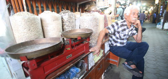 وسط روائح بهاراته وعطارته يستريح، في انتظار ما سيجيء من «الرزق»، قد يكون «ابن بلد» يعشق التسوّق من أسواق دبي العتيقة، أو سائح تستهويه الشوارع القديمة المسكونة بالتاريخ.