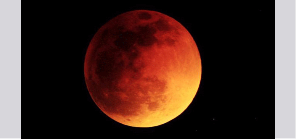 وسيختفي القمر من أمام أعيننا بعد أن تغيب عنه أشعة الشمس ليظهر مجددا بصبغة حمراء في إطار ظاهرة تلقب بـ "قمر الدم".