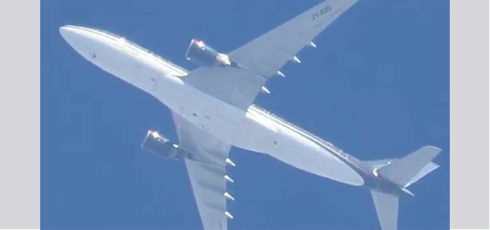 تداول رواد مواقع ىالتواصل الاجتماعي فيديو لطائرة في السماء تم تصويرها بعدسة زوم لم يذكر نوعها، حيث بيّن المشهد كامل تفاصيل الطائرة وبوضوح تام رغم ارتفاعها آلاف الأقدام.