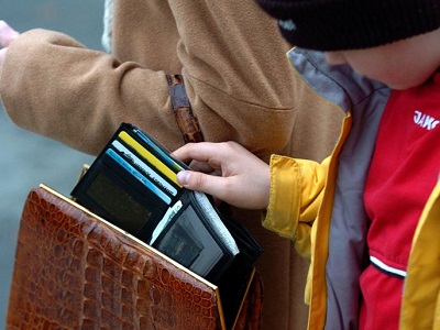وتوضح اللقطات طفل بدأ بالتحرك حول طاولة سيدة بعد أن أشرت له والدته لتأتي لاصطحابه وتسرق الحقيبة في نفس اللحظة.