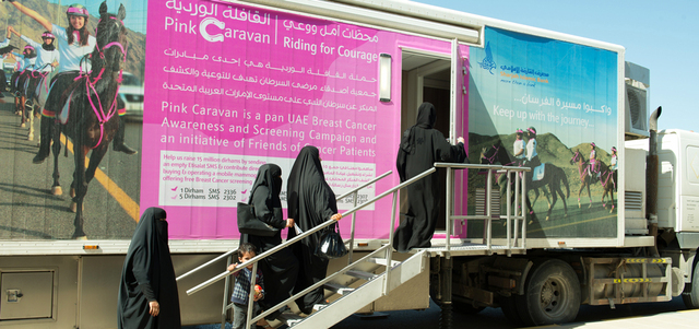 ومن خلال مبادرة «القافلة الوردية»، التي أطلقتها الجمعية عام 2010، استطاعت المبادرة رفع مستوى الوعي بأهمية الكشف المبكر عن مرض سرطان الثدي، وتصحيح المفاهيم المغلوطة حول المرض، وقدمت فحوصاً مجانية إلى 34 ألفاً و400 شخص في دولة الإمارات، منهم سبعة آلاف و873 رجلاً من مختلف الجنسيات والأعمار.