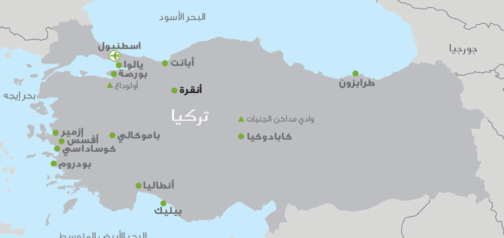 تجمع تركيا بين روح الشرق، وحداثة الغرب، وتمتد أهم مدنها، اسطنبول، على قارتين، وتعد تركيا مزيجاً من الثقافات، ومهداً للعديد من الحضارات، والإمبراطوريات، والشخصيات التاريخية، والأساطير. وتزخر اسطنبول بالهندسة المعمارية الجميلة في قصر طوب كابي، والجامع الأزرق، وآيا صوفيا التي بنيت ككنيسة ثم تحولت إلى مسجد، صار الآن متحفاً، كما يعتبر هيكل آرتميس، ومدينة طروادة، وكابادوكيا، وكنيسة القديس بطرس؛ من بين المواقع الفريدة والتاريخية الهامة في تركيا.