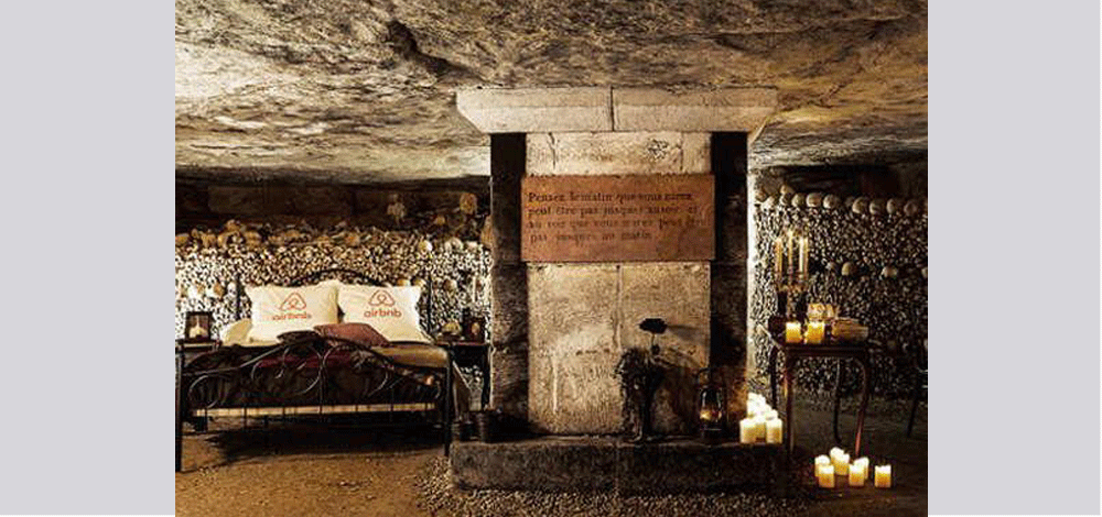 يعرض الموقع الفرنسي "Airbnb" ، عروضا للحجز في غرفة معزولة عن العالم، حيث الهدوء الكامل، ولا يمكن الاتصال بشبكة انترنت ولا الهاتف المتحرك، ولا يشاطر نزيل هذه الغرفة سوى، سوى الهياكل العظمية المكدسة لمئات آلاف الباريسيين.