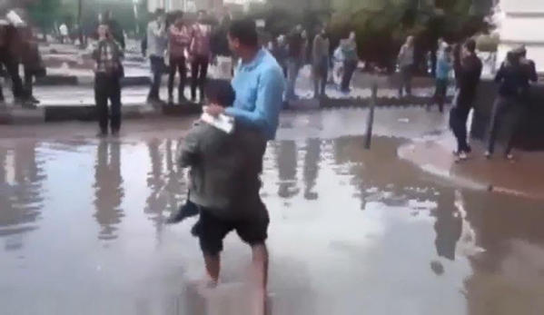 بالفيديو.. وسط الأمطار مصري يحمل الناس من رصيف لآخر مقابل "جنيه للفرد"