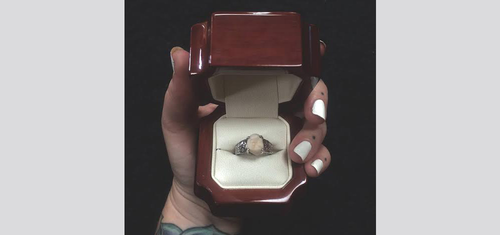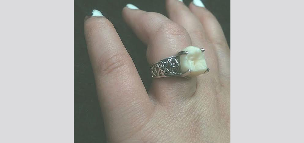 أهدى أميركي خطيبته خاتماً مرصعاً بـ "ضرس العقل" الذي طلب من طبيب الأسنان خلعه، ثم قام تاجر مجوهرات بتشكيله وتلميعه ووضعه على خاتم الخطوبة، ذلك حسب مانشرته مواقع إخبارية.