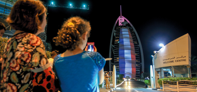 الإمارات تضيء مبانيها البارزة بألوان العلم الفرنسي تضامناً مع باريس